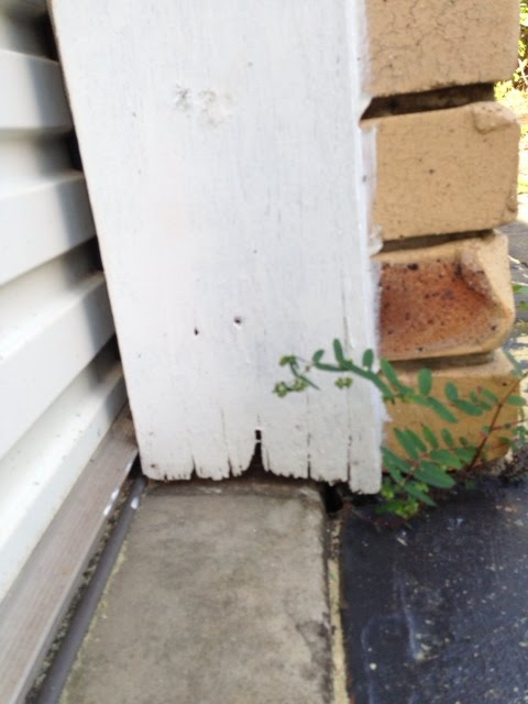 Garage timber door jambs like this are a high risk zone for termites and wood-rot.